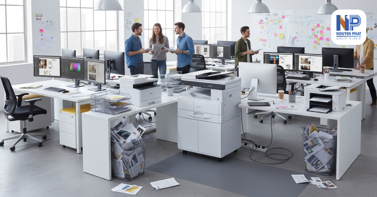 Không áp dụng một dòng máy cho tất cả. Nguyên Phát phân tích nhu cầu (khối lượng in, loại tài liệu, tần suất sử dụng) để chọn cấu hình phù hợp, tránh dư thừa công suất hoặc nghẽn hiệu năng.