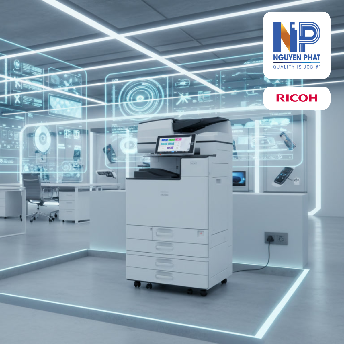 Thay vì sử dụng nhiều thiết bị riêng lẻ, Ricoh IM C2000 tích hợp các chức năng in, sao chép và quét tài liệu trong cùng một hệ thống. Điều này giúp giảm sự phức tạp trong quản lý thiết bị và tạo ra quy trình xử lý tài liệu liền mạch hơn.