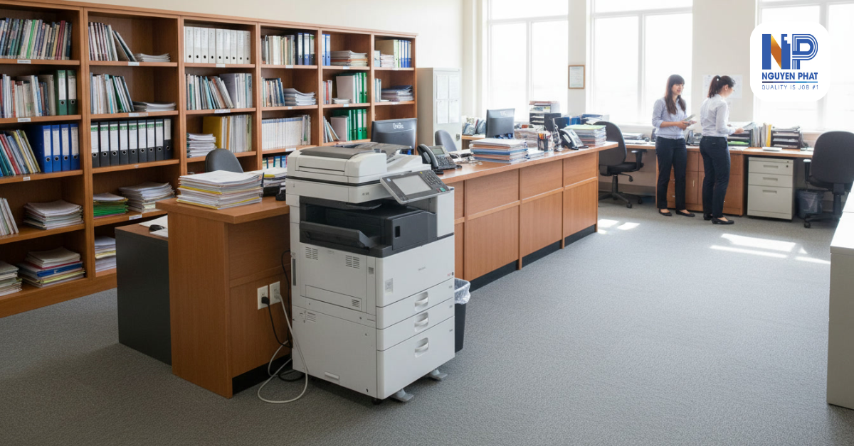 Thiết bị photocopy nên được bố trí trên bề mặt chắc chắn, hạn chế rung lắc và tránh khu vực có độ ẩm cao. Không gian đặt máy cần thông thoáng để đảm bảo quá trình tản nhiệt của các bộ phận bên trong diễn ra bình thường trong suốt thời gian hoạt động.