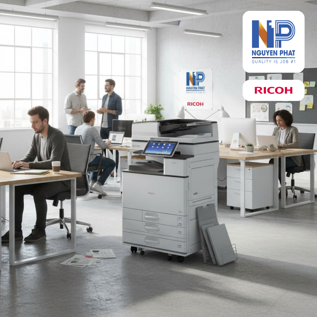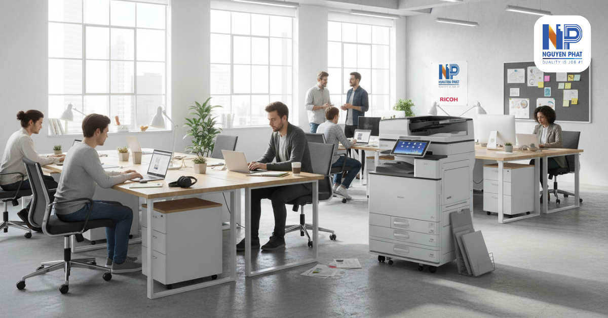 Ricoh MP C4504 nên được đặt tại khu vực có bề mặt chắc chắn, hạn chế rung lắc trong quá trình vận hành. Môi trường đặt máy thông thoáng và ít bụi sẽ giúp các bộ phận bên trong hoạt động ổn định hơn.