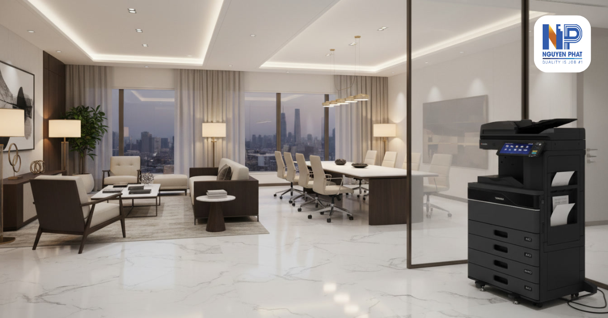Thiết bị đảm nhận vai trò trung tâm trong việc in ấn, sao chép và số hóa tài liệu, giúp các bộ phận phối hợp xử lý hồ sơ mà không bị gián đoạn.